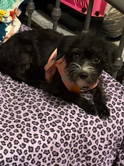 Bella Rose is a mostly black Shih Tzu mix. She's 4 years old and around 10 lbs. She's spayed, heartworm negative, and up-to-date on vaccines and monthly preventatives.